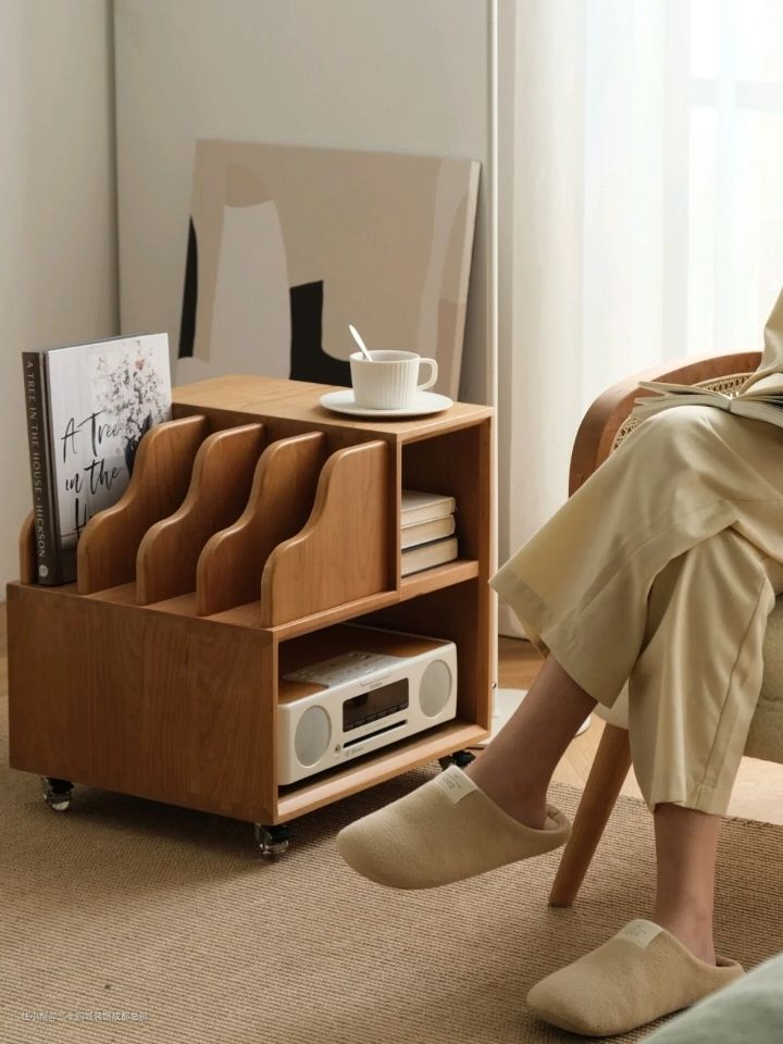 建议:采用边几来替代茶几,客厅空间省出好几倍,而且方便随时移动,收纳能力也不比茶几差。