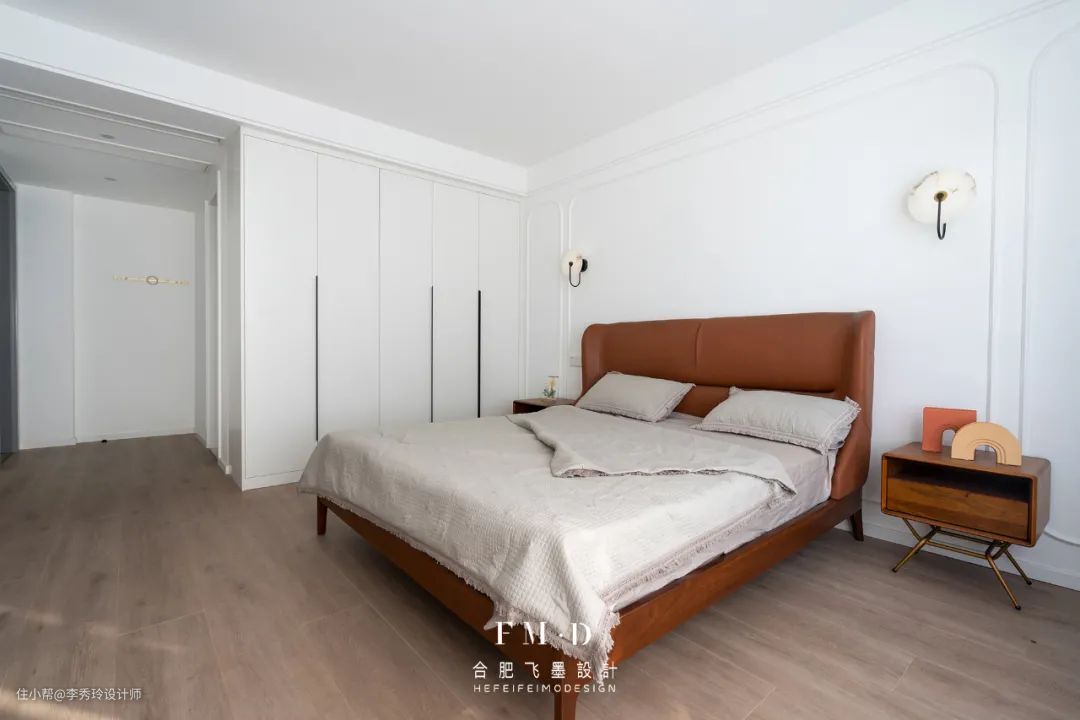木饰面板作为近些年大火的墙面装饰,温暖质朴的家居氛围用在床头背景墙也很合适。