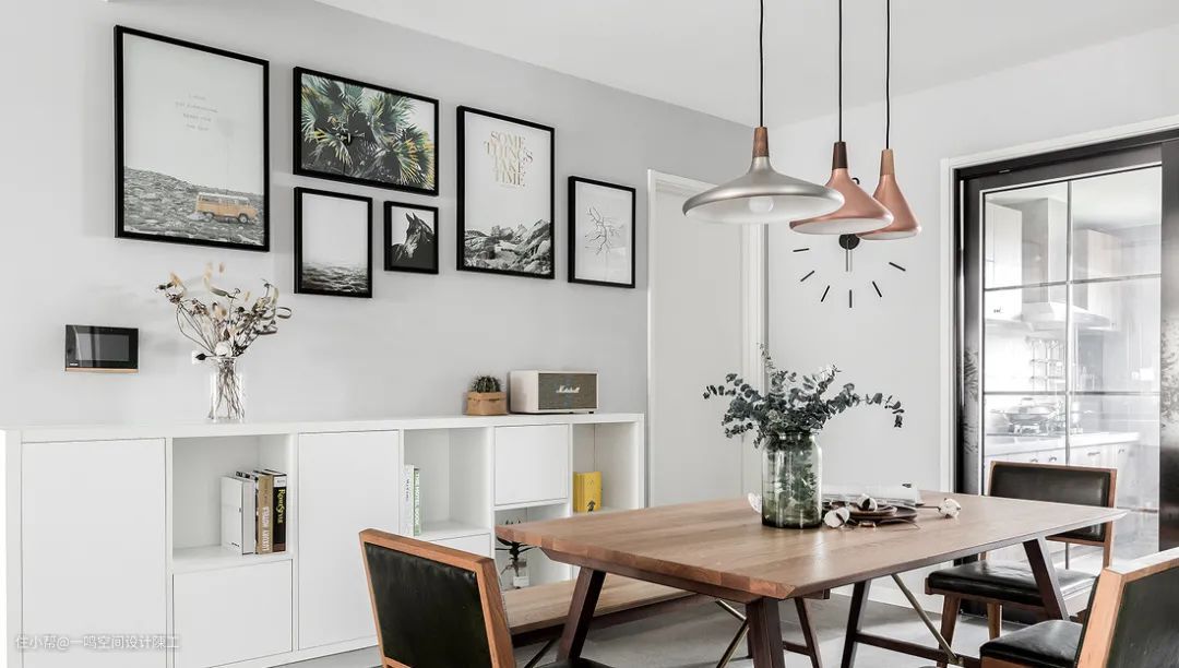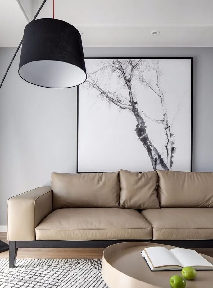 又要讲到黄金法则“less is more”,装饰画的颜色越少越高级,黑白配就能凸显层次感。