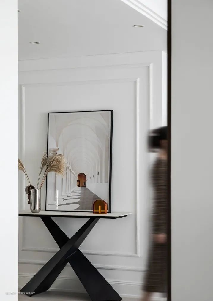 一堵大白墙+一幅大尺寸装饰画,空间质感立马就上来了,搭配投射灯,凝聚视线,分分钟打造高级感。
