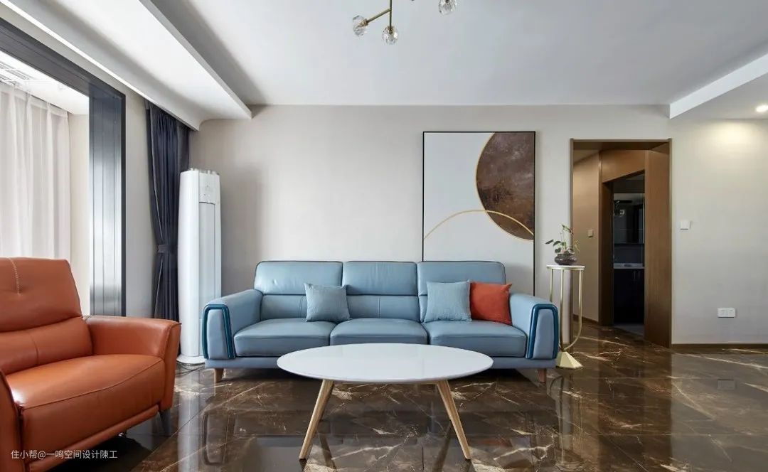 极简装修风格十分注重颜色的统一,且多以黑白灰为主色调,可以选择色彩鲜艳的装饰画为空间提色。