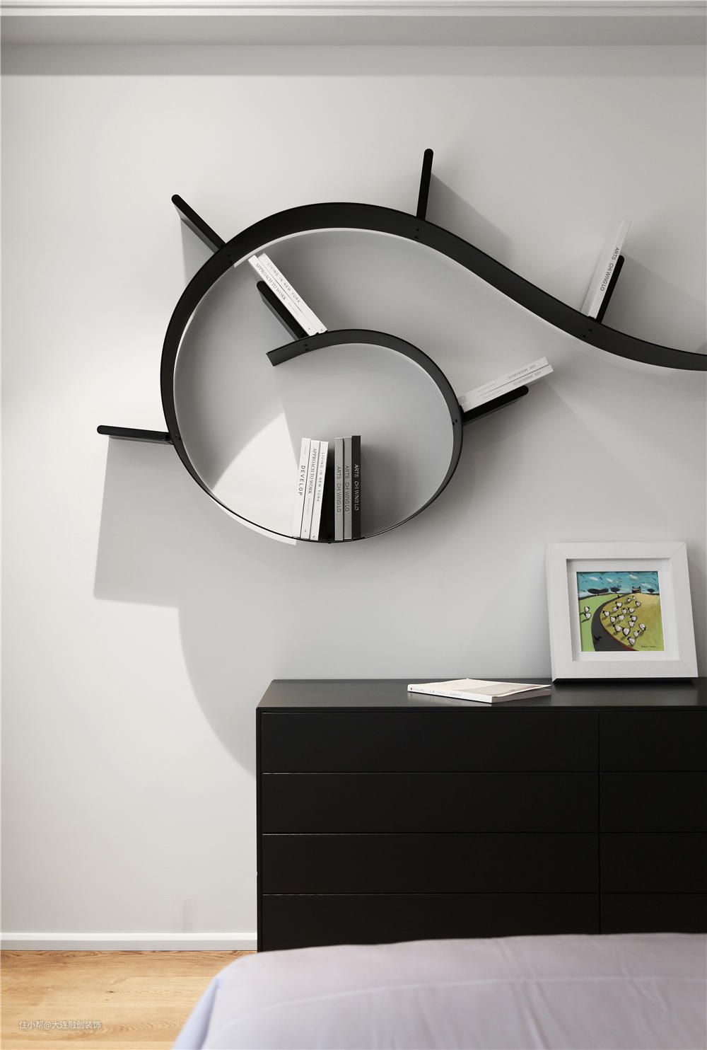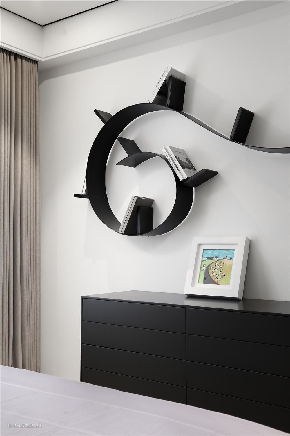 #卧室 #特殊定制的卧室家具,黑色哑光边柜和异形书架,空间里的具象意味。卧室不被物质围绕拥挤,空间内只有极少量的必需品,重新拥有 「 自如流动 温柔安寝 」的本质。