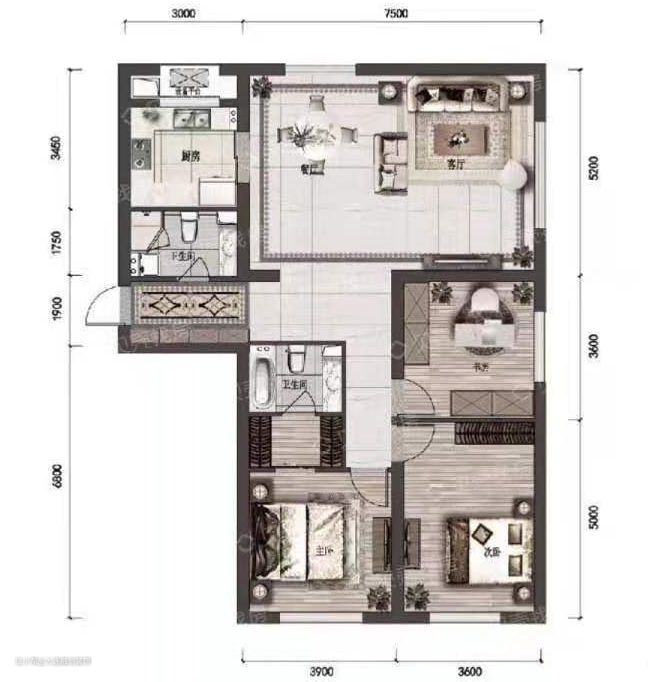 大连中信丰悦城175平现代装修案例,少即是多,简洁即是丰富