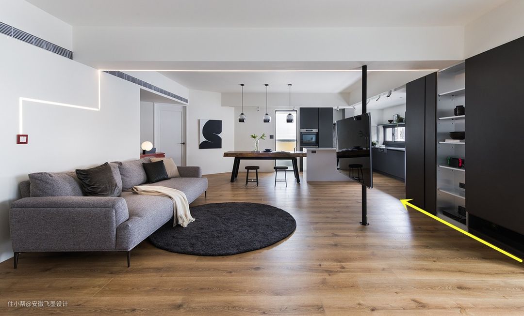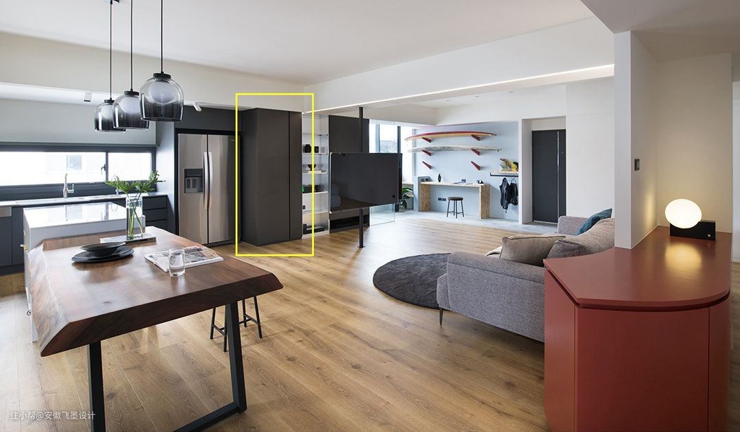 本身客厅和厨房连在一起,如何充分利用空间并进行巧妙划分呢?