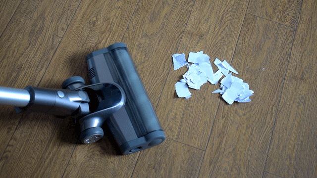 较重的大颗料物能轻松吸除,那轻若无物的纸屑能一吸了之吗?正好看到地上有孩子扔的废纸,于是测试了一下,不管是大颗料物、轻而散的纸片或是毛发,它都能清洁得干干净净。电动滚刷采用碳纤维材质+软绒材质,不仅能处理毛发和碎屑,使用时也相当于给地板做了一次抛光养护不用担心会伤到木地板。