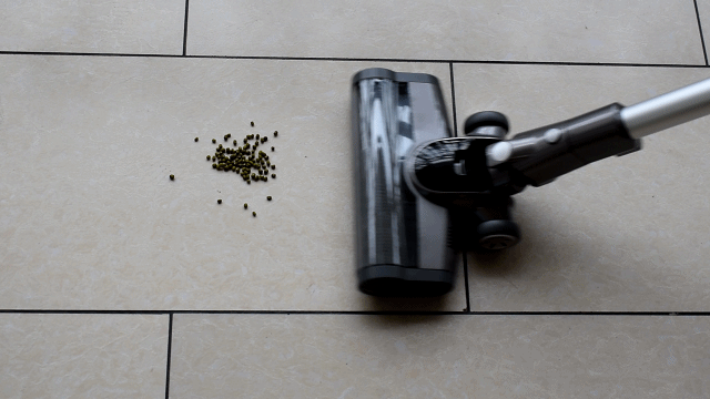 厨房最爱残留不慎掉落的豆子等大颗料物,以前只能用扫帚或扫地机打扫,但一扫豆子就会四下散开,清洁起来极不方便,这次我用华为智选吉米手持吸尘器HA5的软硬毛复合大滚刷一吸,地面马上干干净净,没有一颗豆子残留在地上。想来是因为它搭载了