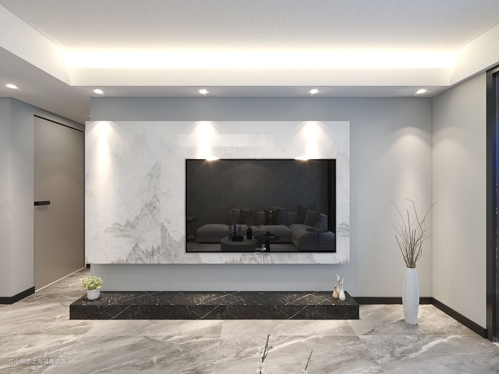 【客厅】一改复杂的传统电视背景,通过上方嵌灯的照射,让背景更加干净整洁。传统的电视背景墙采用的都是墙纸,但是现代设计风格中,往往都是采用立体背景墙,更加突出层次感。