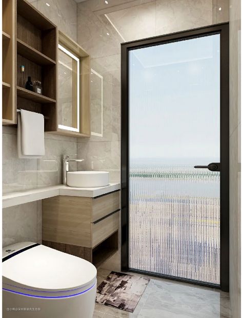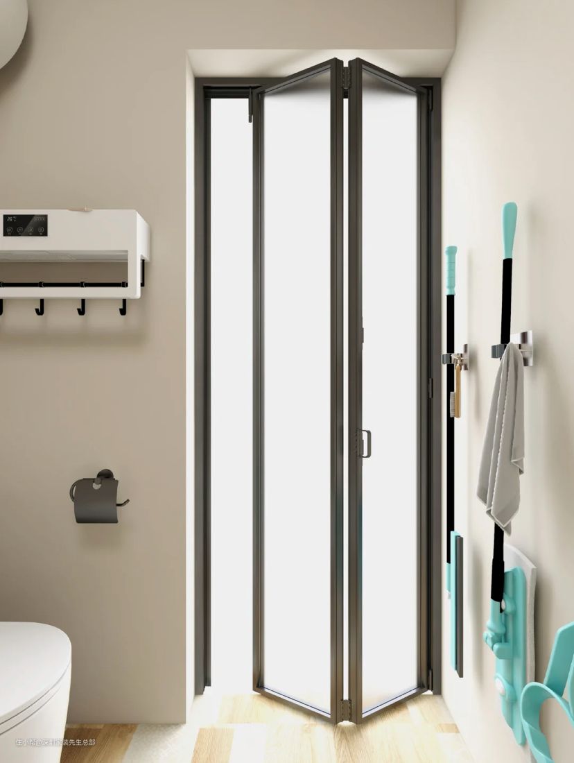 卫生间门变成了折叠式的全景门,进出空间达到90%,大块头的人都不会觉得进进出出拥挤。