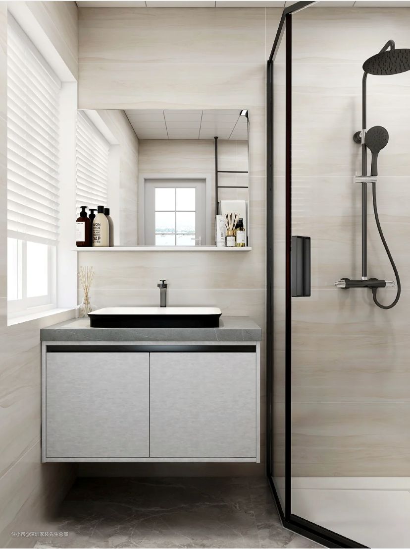 确定浴室柜的尺寸后,再确定淋浴房的大小。