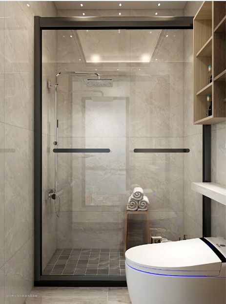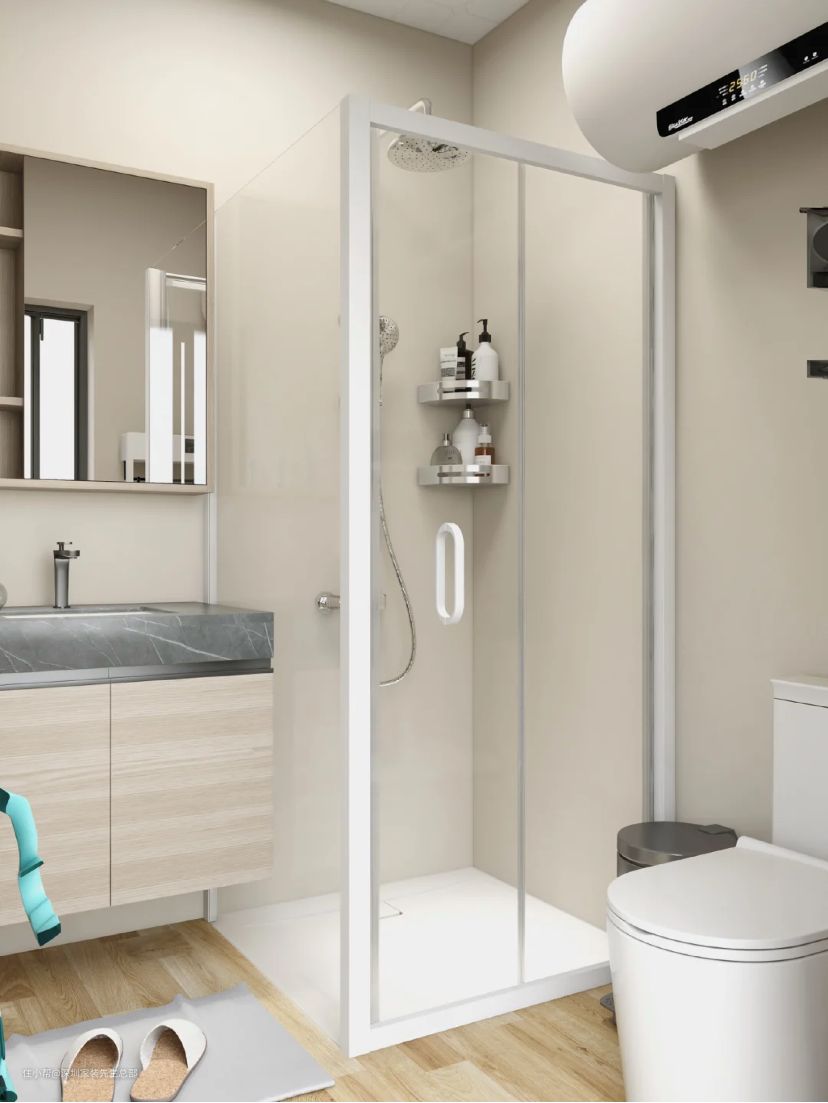 洗手间太小,建议选择推拉门淋浴房,开门不占空间。