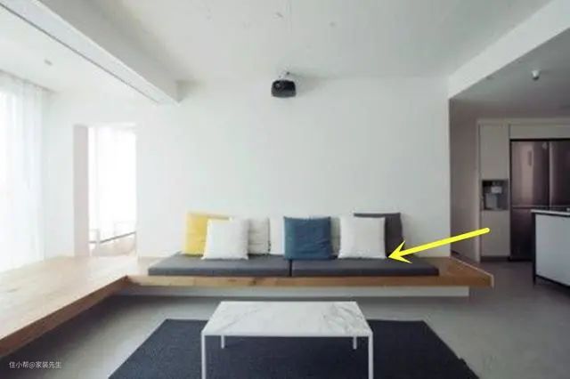 现在木制的一体式地台沙发很受欢迎,木制结构一般20cm左右,地台底部掏空做收纳抽屉设计,既不影响平时的使用,又增加了收纳功能,何乐不为!而且板子不容易塌陷,不会出现越坐越脏的情况!