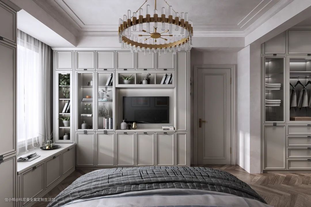 飘窗的立面墙改造成壁龛,不仅拥有一个不占面积的展示区,还能提升全屋质感。