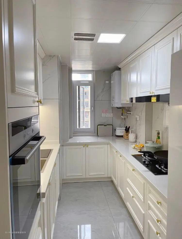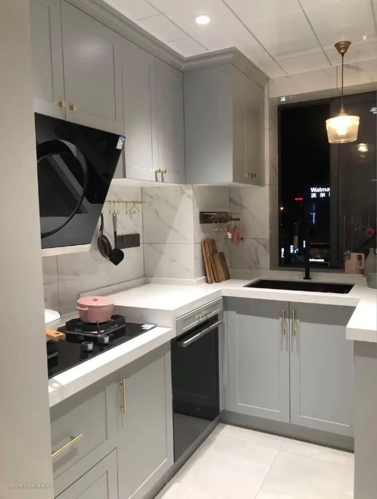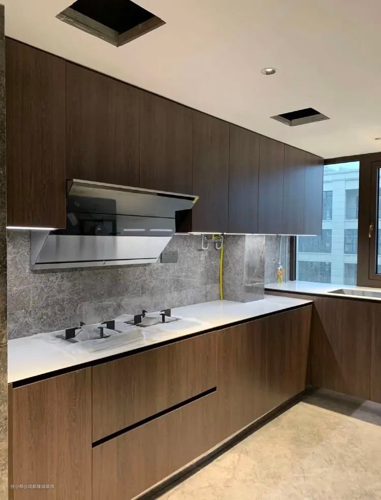 防水石膏板是按照屋顶的尺寸制作,整体吊上去,一眼望去,没有缝隙,可以让天花板的存在感降低;安装灯具、照明也更加自在;整体性好,可以喝厨卫空间更好的融合,非常美观!开放式厨房的必备操作。