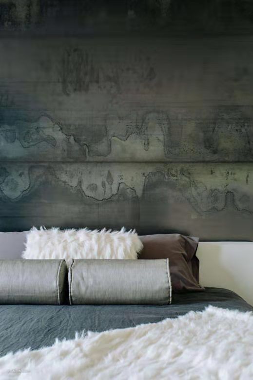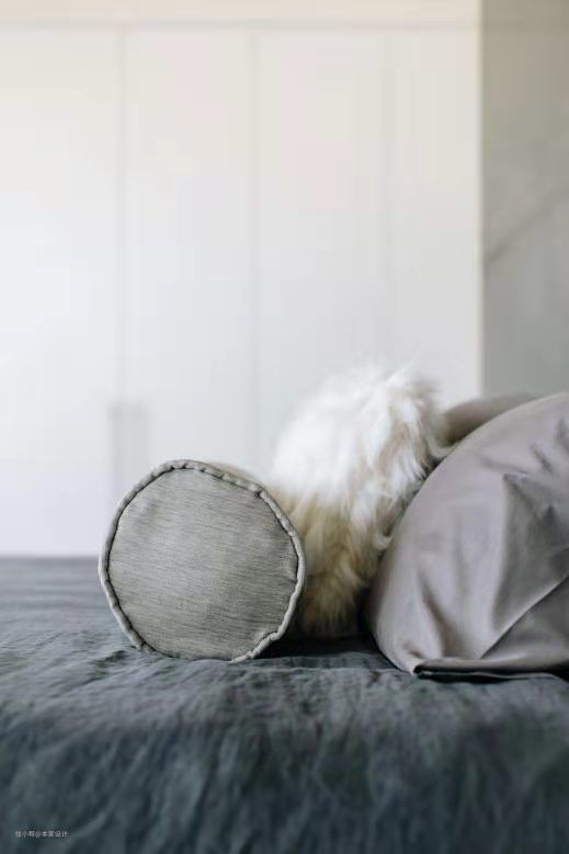 亚麻布质的圆柱抱枕;毛绒质的方形靠枕;棉布质的枕头;细微的床上用品都体现了户主对细节的追求与执著。