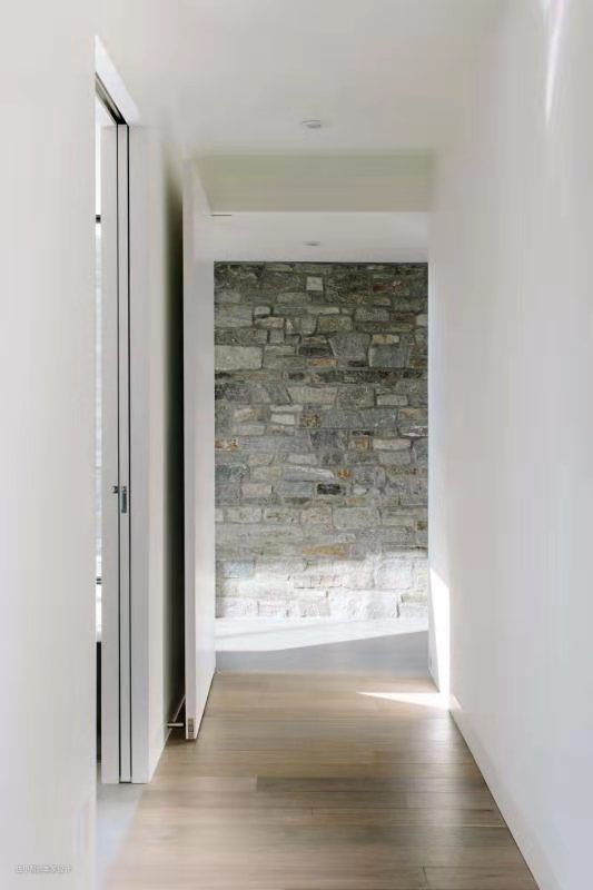 以文化石图案作为装饰的墙体有了“穿墙而入”的感觉。