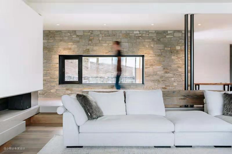 凹槽下的电子壁炉成为墙体唯一的装饰。