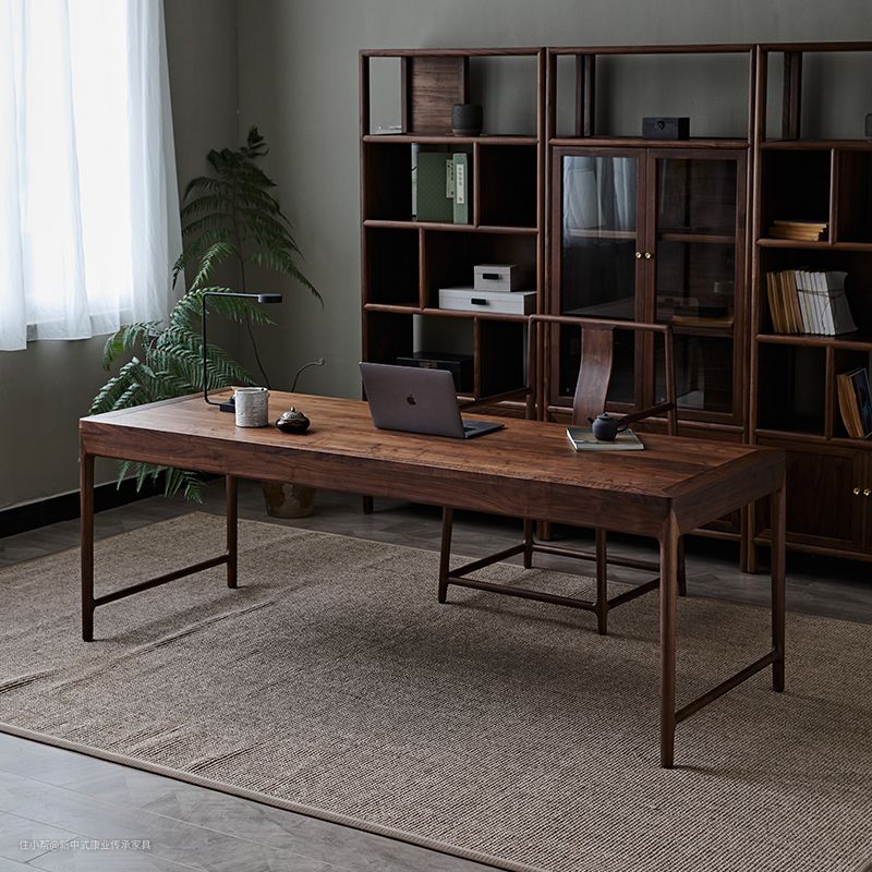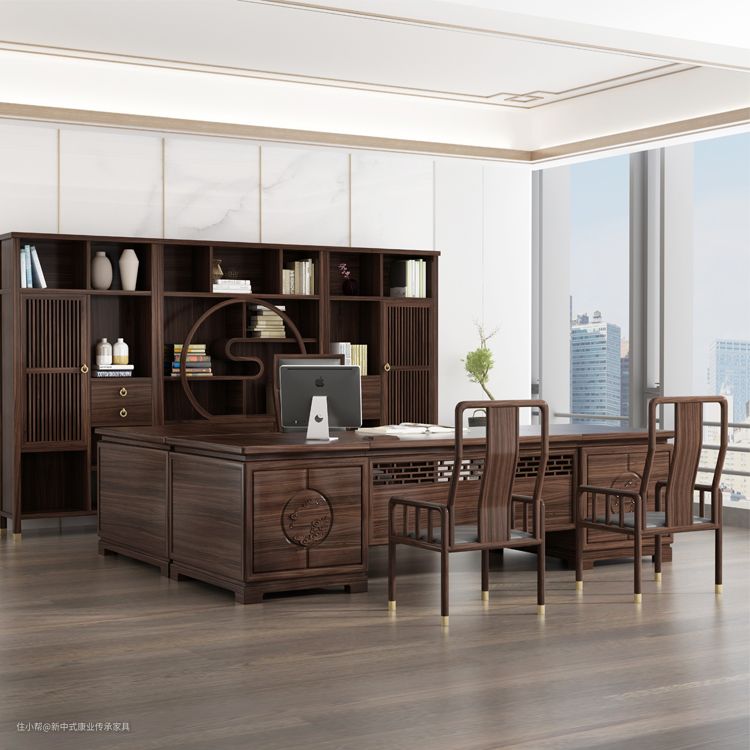 新中式书房家具沿用了中式风格的家具材质的特点,运用现代感的设计理念,将古典文化气息的家具全新的诠释出来,同时选用不同材质的木质作为原材料。其中材质可有海棠木、榆木等实木型的材料作为家具的原材料。