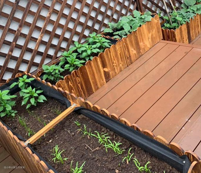 接下来的设计大部分人都很熟悉并且多少操作过,没错!就是种菜。作为骨子里有着种菜基因的中国人,可以说是走到哪里种到哪里,玩个游戏也要种,甚至种到了月球上,有条件要种,没条件创造条件也要种!也不知道是因为想吃绿色新鲜瓜果蔬菜,还是想享受丰收的喜悦,反正把露台改成菜园就完事了,圆你的田园梦。对于10级种菜爱好者,咱们可以将整个露台改成大菜园, 不过要注意的是将露台改为大菜园要做好排水、防水,施工复杂,而且后期不想种了想改回来也很麻烦,所以不是种菜铁粉,不要轻易尝试。