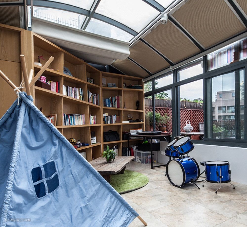 虽然大露台很爽,但是风吹日晒的,且使用受天气影响大。如果担心这个问题小伙伴们,也可以将露台改为阳光房,室外空间变室内空间,超赞。将露台改为阳光房后,内部功能可以根据自己喜好布置,设计成书房、休闲区都可以。建议虑防水效果,阳光房要选择密封性好的材料。考虑隔热效果,阳光房顶部和侧面都要开窗户,增加空气流通。阳光房顶部建议加装电动遮阳帘,有时候阳光太充足也会令人眩晕,只要考虑到以上几点,那就可以得到一间实用美观的阳光房啦~