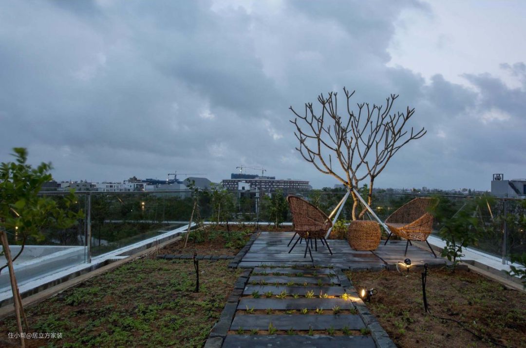 首先还是按常规解释一下露台=露天的大阳台,所以通常只有顶楼或别墅才有,相较于庭院,露台的私密性更强,也是一个绝佳的休闲娱乐空间,这意味着装修它以根据不同用途下手,而且可以更自由的发挥想象,别问,问就是自己家想怎么装就怎么装!