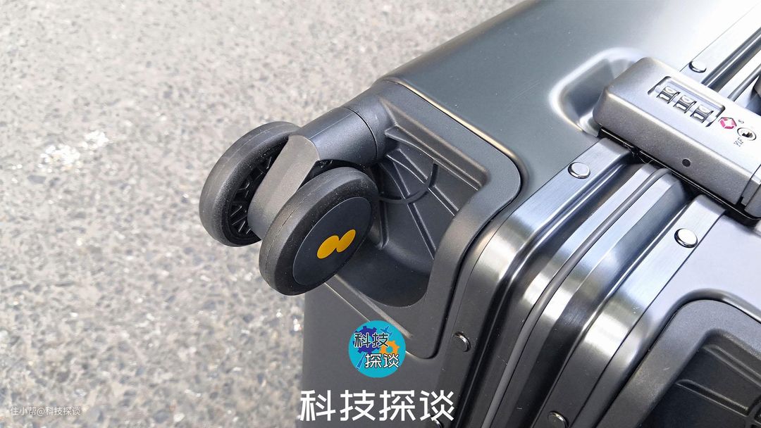 行李箱的四个轮子中心都有两个小黄圈,既美观品牌辨识度又很高。