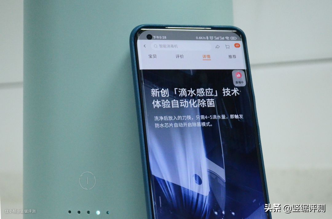 另外,除了手动开启消毒模式外,天猫精灵火鸡智能刀架还具备滴水感应,也就是当刀架识别到放入的筷子、刀具等餐具上有滴水现象,大约4至5滴水量后天猫精灵火鸡智能刀架就会触发防水芯片,自动开启消毒模式。而刀架的消毒模式主要为:烘干、紫外线除菌,所以它能烘干筷子等餐具上的水,毕竟有时候我们清洗筷子等餐具时,未必会做到“滴水不沾”。
