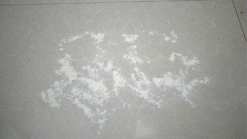 ▲我往面粉上洒上水,让它干湿混合,变得粘腻。然后开启必胜高速洗地机推行过去,发现一次清洁效果还是比较满意的。