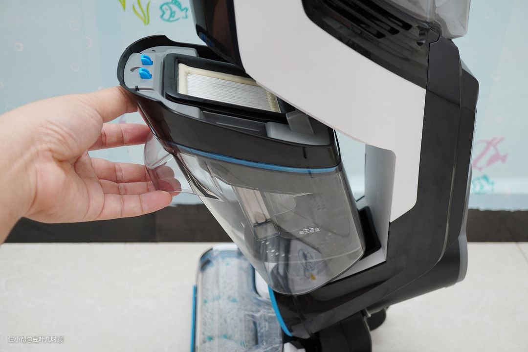 ▲水箱还贴心地标注了小面积和大面积水位,不同户型的用户可以根据自身需求添加水用以清洁。一次清洁过程中,不需要频繁加水,还是很方便的。