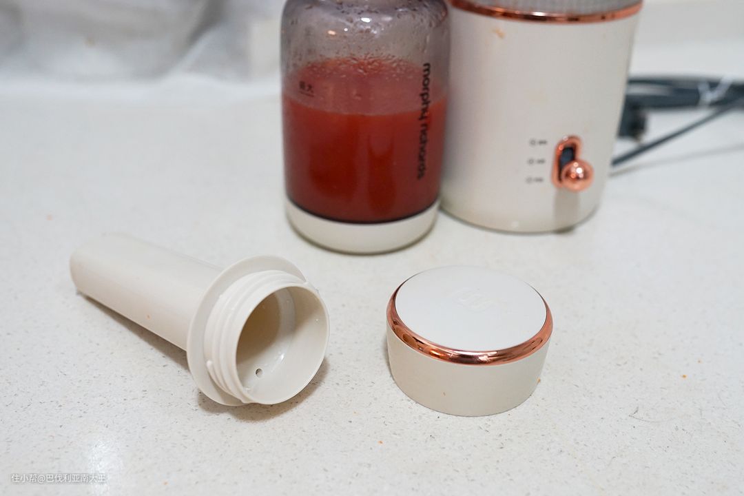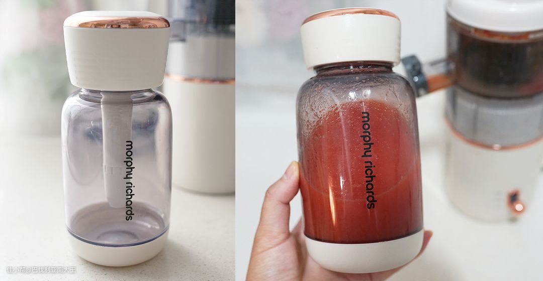 最后把推料棒上面的盖子拧下来,变身果汁杯,就可以带出门啦~整个操作过程超省心的!