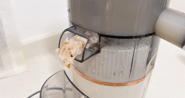 接下来就是果汁制作了,原汁机的转速决定了出汁率,因为它的工作原理是螺旋推进低速压榨,转速越低,研磨的越精细,果汁渣滓越少,产出的果汁营养越高。