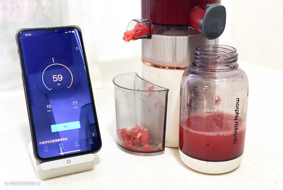 也是因为各自运行原理的区别,原汁机的噪音比另两款低很多,实测也就60分贝左右,跟我们平时讲话的音量差不多,即便早起使用也不担心会吵到家人。而破壁机和榨汁机基本都在90分贝以上,噪音相对较大,差不多是吹风机的感觉,家里有娃的还得多注意,不要离得太近。