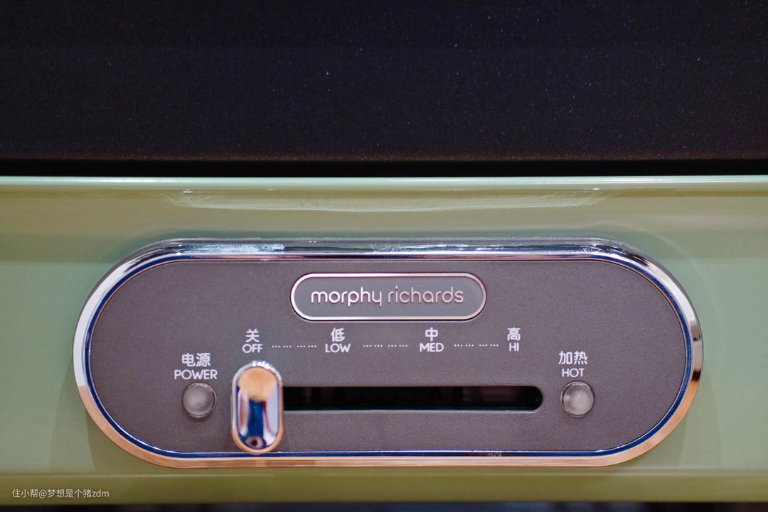 摩飞多功能料理锅采用的滑动杆调节温度,内置有热补偿温控器,控温也比较准确,只是不如数字档位那么直观。