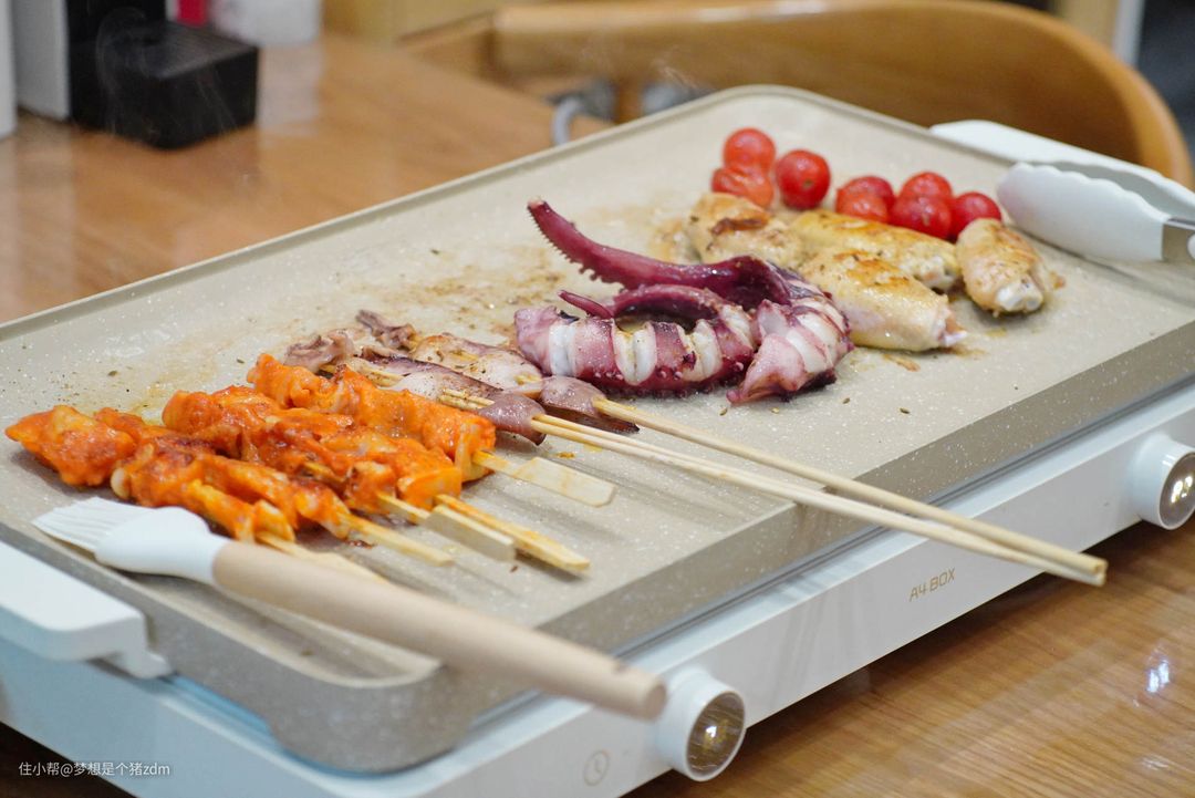 首先,我必须要承认,适盒A4BOX双盘聚嗨炉的这个大烤盘实在是太好用了,差不多是55*30cm的尺寸,完全可以应付大场面,一次性可以同时烤十几个串的同时还能顺便烤点鸡翅。