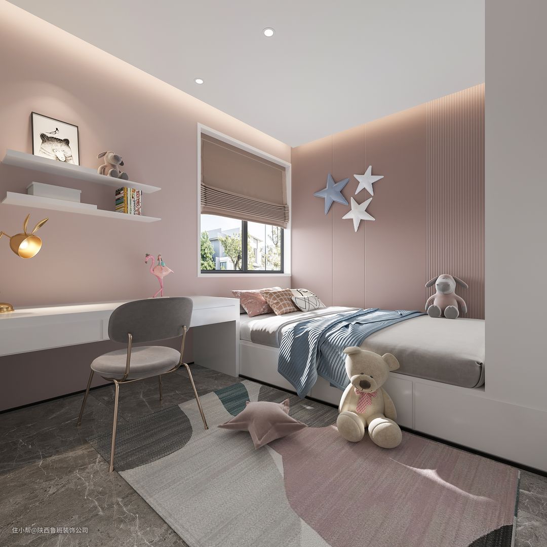 精致统一的壁布和背景墙加上柔和的灯光设计营造温馨的安然环境,背窗的设计采光通透,整个房间都流动着梦幻的光线。每天早晨,阳光从床头爬进,叫醒你的每一天,马卡龙的少女粉,虏获浪漫的少女心。