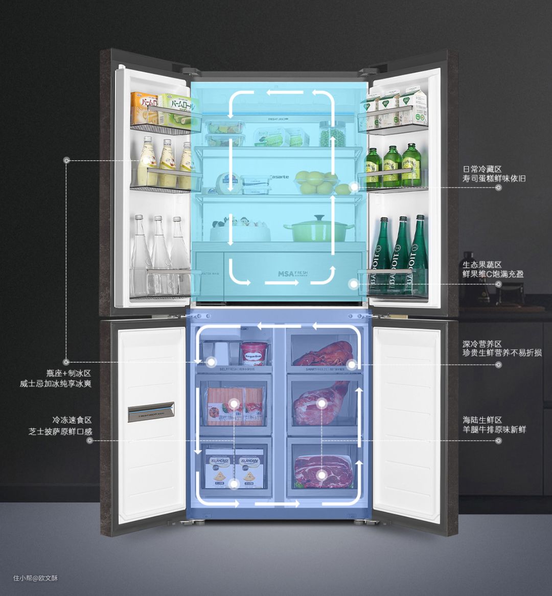 当然,只有外观好看显然是不能满足需求的,它的核心优势,也就是我觉得能够满足题主所说的“质量好”的点在于它的全空间保鲜科技。所谓“全空间保鲜”,直白说就是无论冷藏,还是冷冻,都能够长久保持食材的新鲜与风味,以及降低营养的折损率,让吃到嘴里的食材能够更加接近放进冰箱时的原始状态,口感不打折,新鲜又营养。也就是说,对于一些喜欢囤食材的家庭来说,不用担心周末去超市开开心心选的新鲜蔬果肉类,过了几天打算料理的时候却发现菜蔫了,果烂了,肉发白不那么新鲜了,相当于买的时候是花了大价钱的生鲜,吃到嘴里却是打折区的临期食材,那心情就不美丽了。