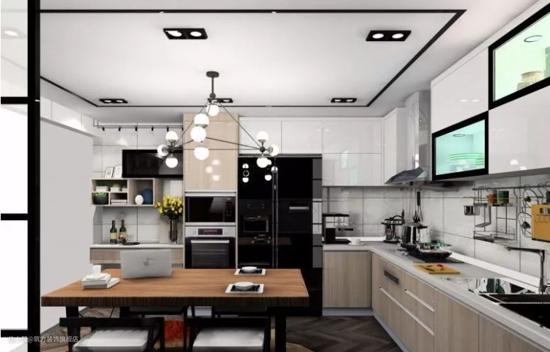 ②尽可能将部分功能合并起来,如餐厅与厨房合并,打造方便的餐厨区;或者餐厅与客厅合并,定制个性餐桌椅,让餐厅不仅仅是用餐区,更是休闲区、亲子区、工作区。