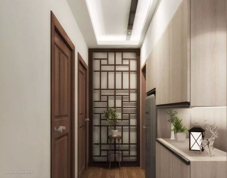 ①造个假玄关,利用鞋柜、隔断墙,创造出玄关,化解进门见厅的尴尬。