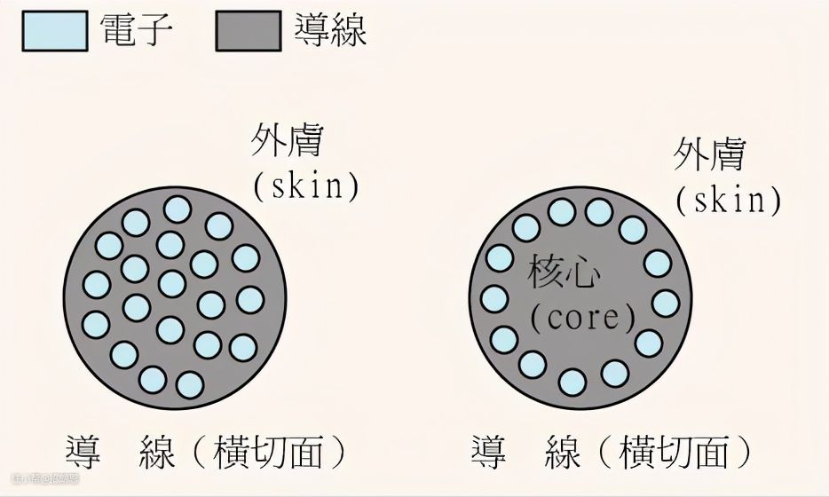 电线在通电时,会出现一种现象——趋肤效应,电流集中在电线的表面。因此,单芯硬线和多芯软线对比,多芯软线在抗趋肤的能力上比较出色,电流能够分布得更均匀,不会像单芯硬线那样,形成电流的损耗和浪费。