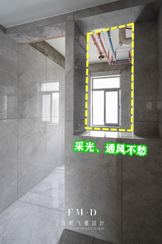 卫生间采光和通风问题也是重中之重,但不用担心,隔墙上方做留空处理了,因此不挡光线和通风。