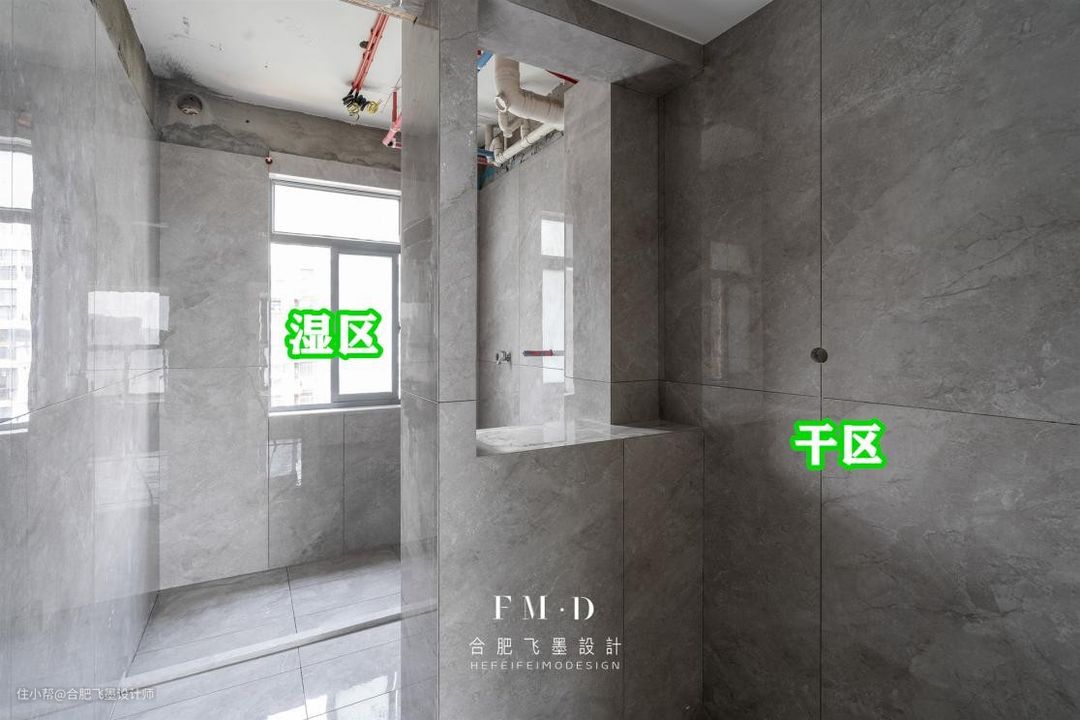 等到装修才发现,自家卫生间下水管不在拐角处,在正中间靠墙,这咋装都别扭,没曾想瓦工延伸半墙砌壁龛,正好将卫生间一分为二,实现干湿分离,问题迎刃而解!还多了收纳区多实用啊!