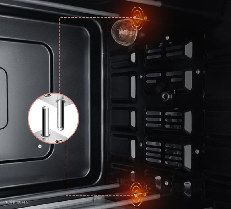 之前反复给大家科普过,目前主流加热管分为直线型加热管和M型加热管,而且目前主流烤箱也多为不锈钢材质加热管了。在加热管的分布上,直线型加热管多采用单侧多根排布结构,根数越多加热越均匀。M型加热管则多用于中高端烤箱和蒸烤箱中。因此,选择烤箱时直接看根数就好。