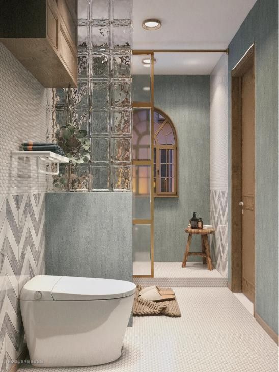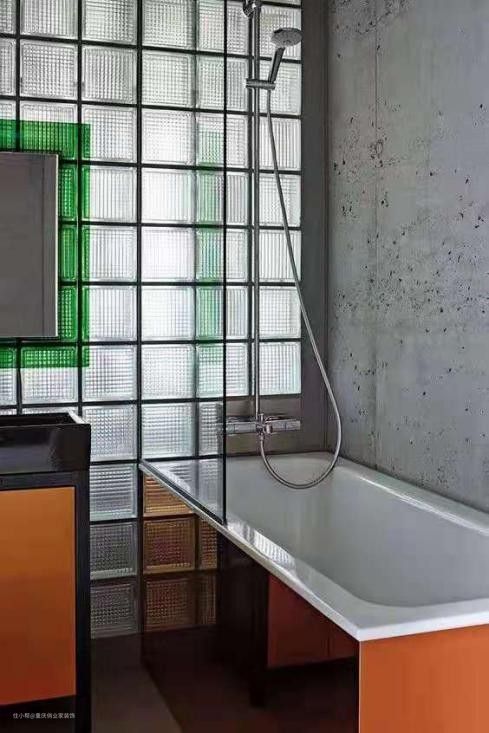 用在浴室隔断,是玻璃砖很实际的应用。洁净的外观和防水的材质,让玻璃砖非常适用于浴室这种私密的地方。