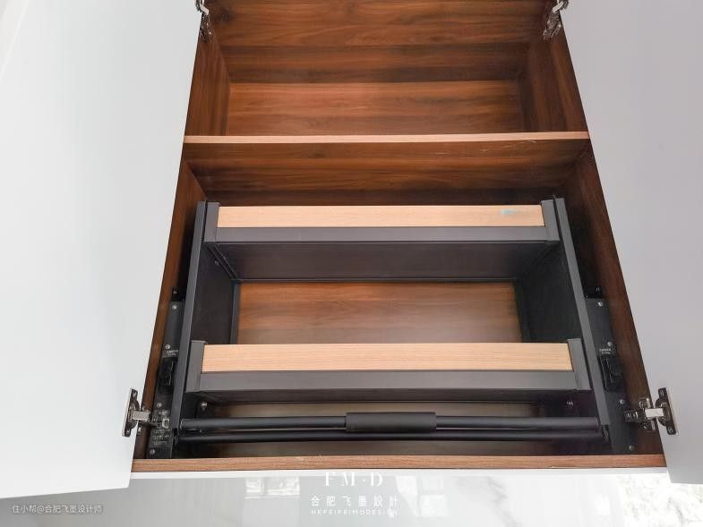 谁会嫌收纳多,早早把吊柜装上,最大化利用厨房。不用担心柜子太高,东西不好拿不好放,加个神器在里面就能立马解决!