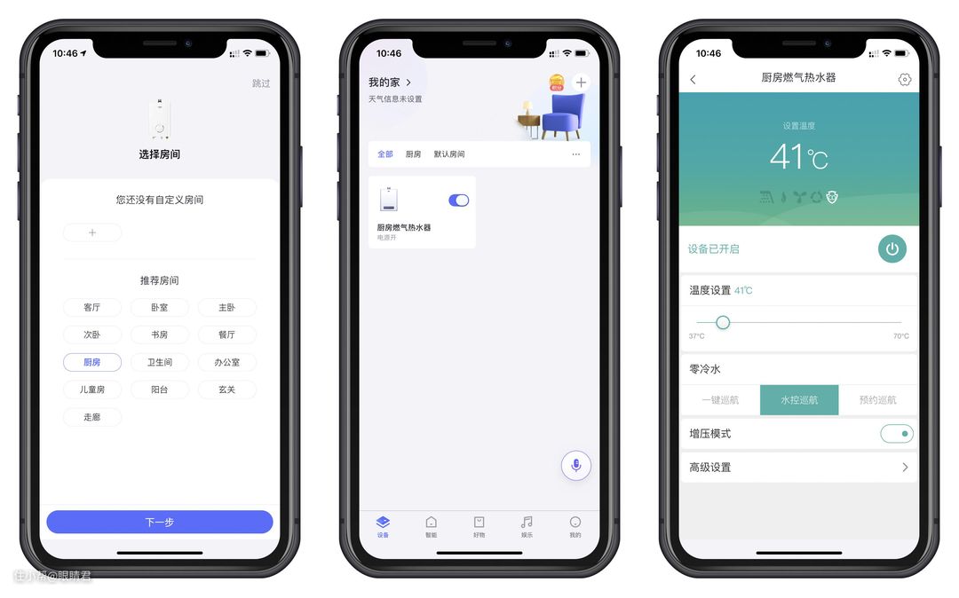 最后设置设备所在房间,即可绑定设备。点开燃气热水器,即可进入app操控界面。