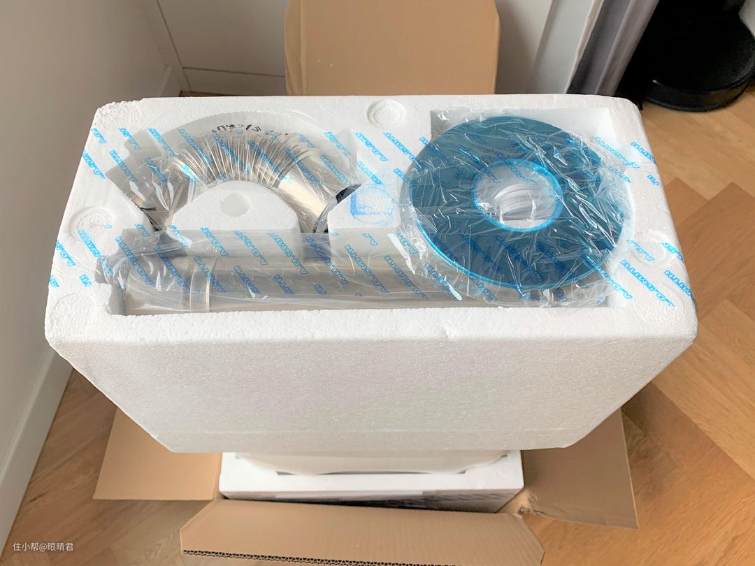 配件全都嵌附在泡沫中,并用胶带固定。佳尼特真是A.O.史密斯亲儿子,包装胶带都是A.O.史密斯。