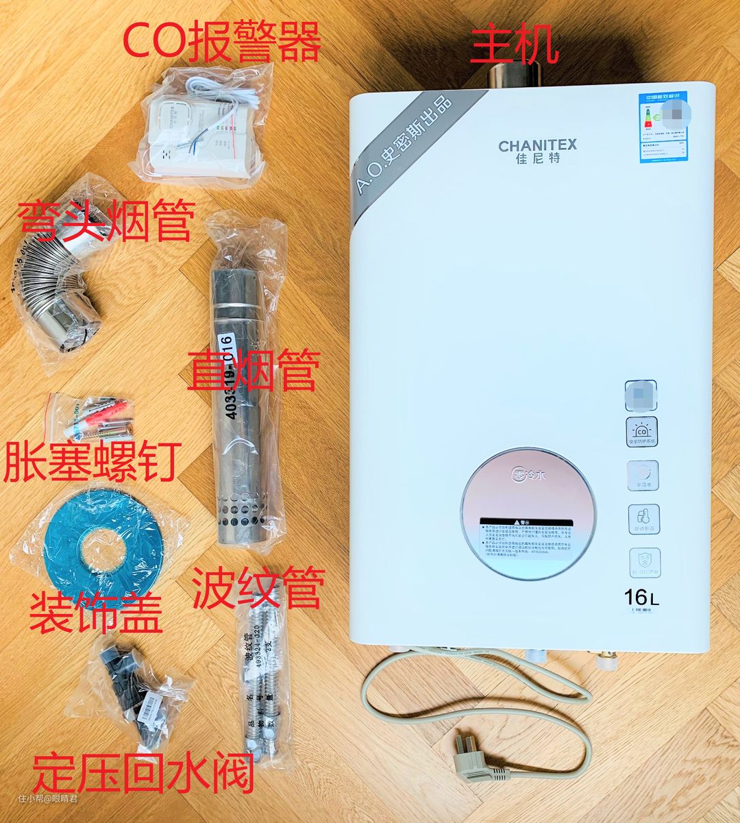 CO报警器,之前只在A.O.史密斯的燃气热水器产品看到过这个装置,母公司也是毫无保留地把产品方案给了佳尼特。
