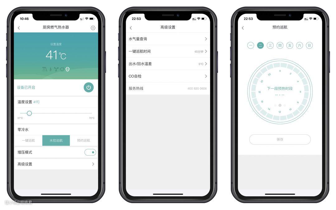 预约模式只要选定好工作时段,在预约时段内自动启动热水巡航,和另外两种模式共存。
