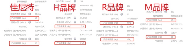 佳尼特这款15kg的产品净重量,要比最轻的M品牌产品,足足重了4kg。