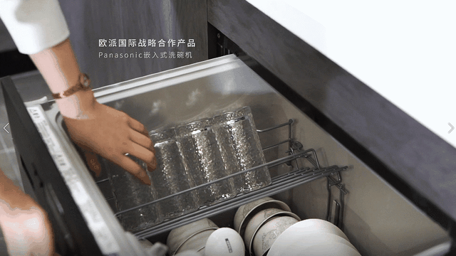 ▲水槽下方为嵌入式洗碗机,不会额外占据空间,使用如拉抽屉般方便,让厨房生活更加舒适快捷。