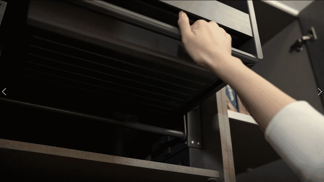 ▲高柜拉篮设计,充分考虑不同身高人群需求,只需轻轻一拉底部把手,拿取物品轻轻松松。